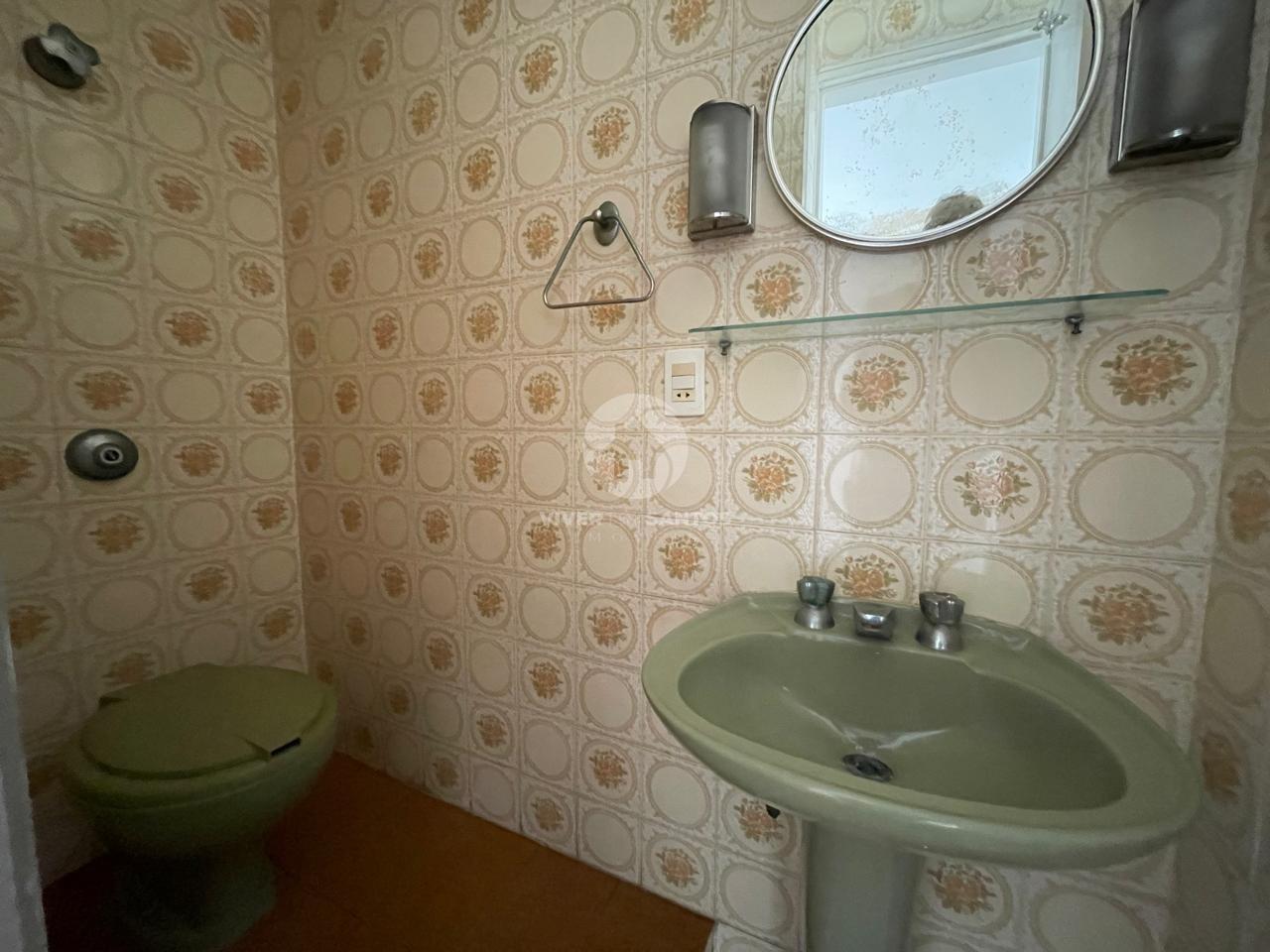 O apartamento conta com 3 quartos , um banheiro social , 1 lavabo , sala ampla , cozinha e dependência completa, entrada social e de serviço e 2 vagas na garagem.