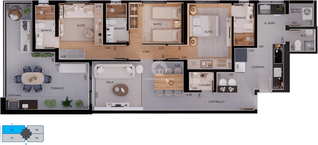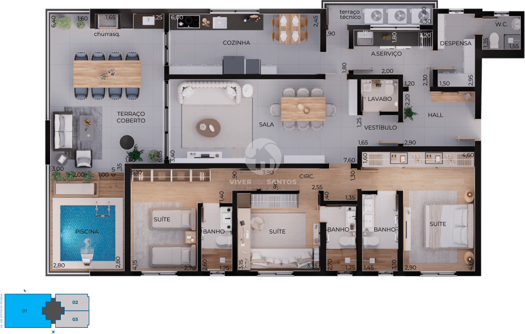 • 3 suítes – 124 m²