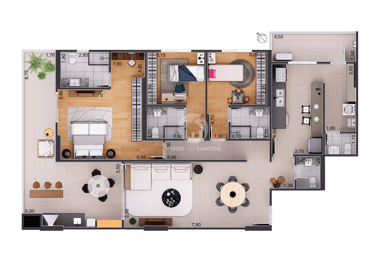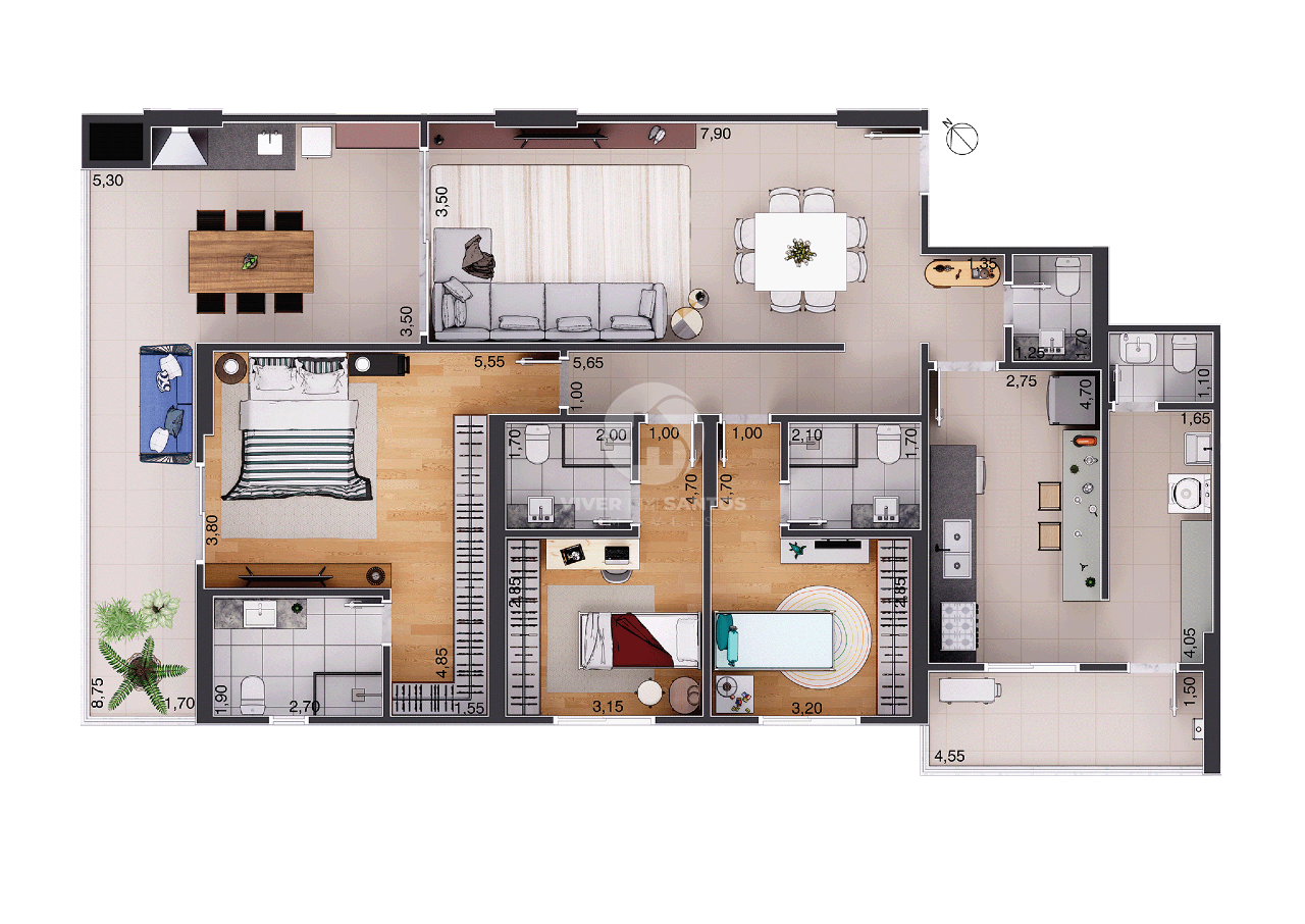 • Unidades de 170 m² com 3 suítes